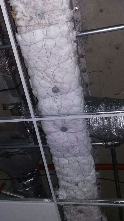 Nessa obra, também para proteção contra incêndio, foi utilizada a lã de vidro sem resina.