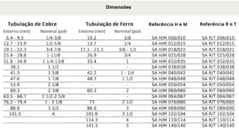 Características: Suporte para Tubos Elastoméricos