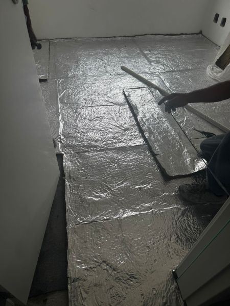 Consumo de fita metalizada para fazer a junção do isolamento: 2.40ml por m².